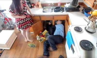 Stepmom and son have anal sex in the kitchen. Mom with humungous ass real son